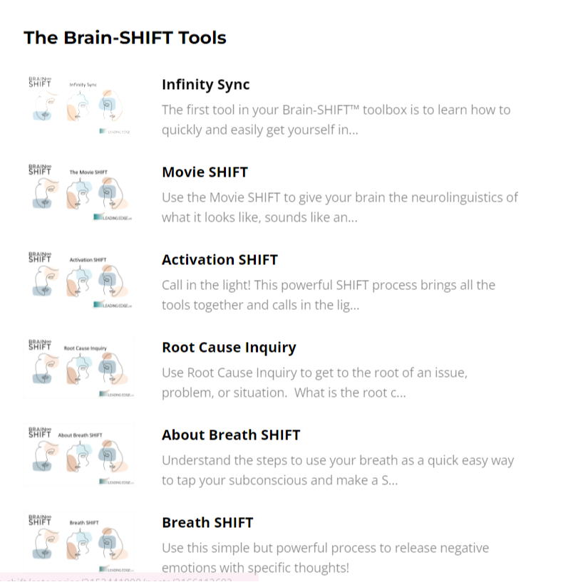 ✨ Quick Video Tutorials to master the super-learning techniques of Brain-SHIFT™ that go deeper than anything else you've tried and get to the deeply hidden root cause of the stuck energy.