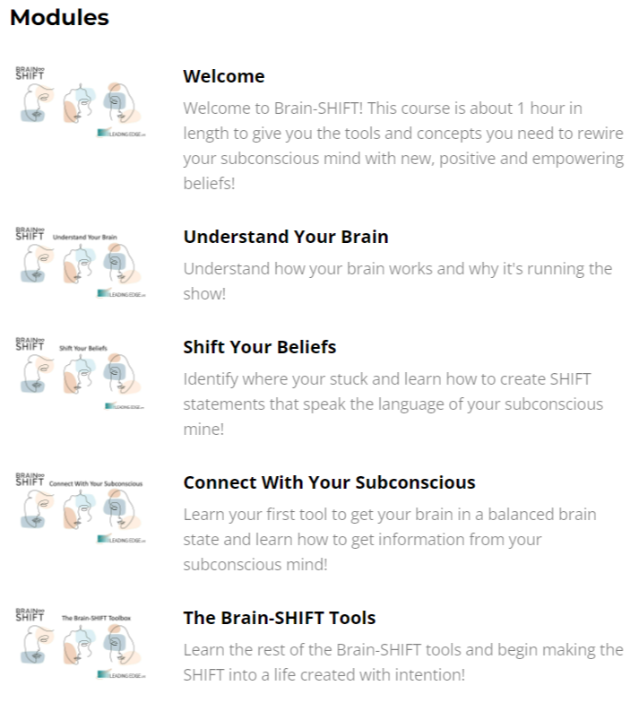 Six modules help you understand why the mind and body hold stuck energy that you need to SHIFT if you want to manifest easily.